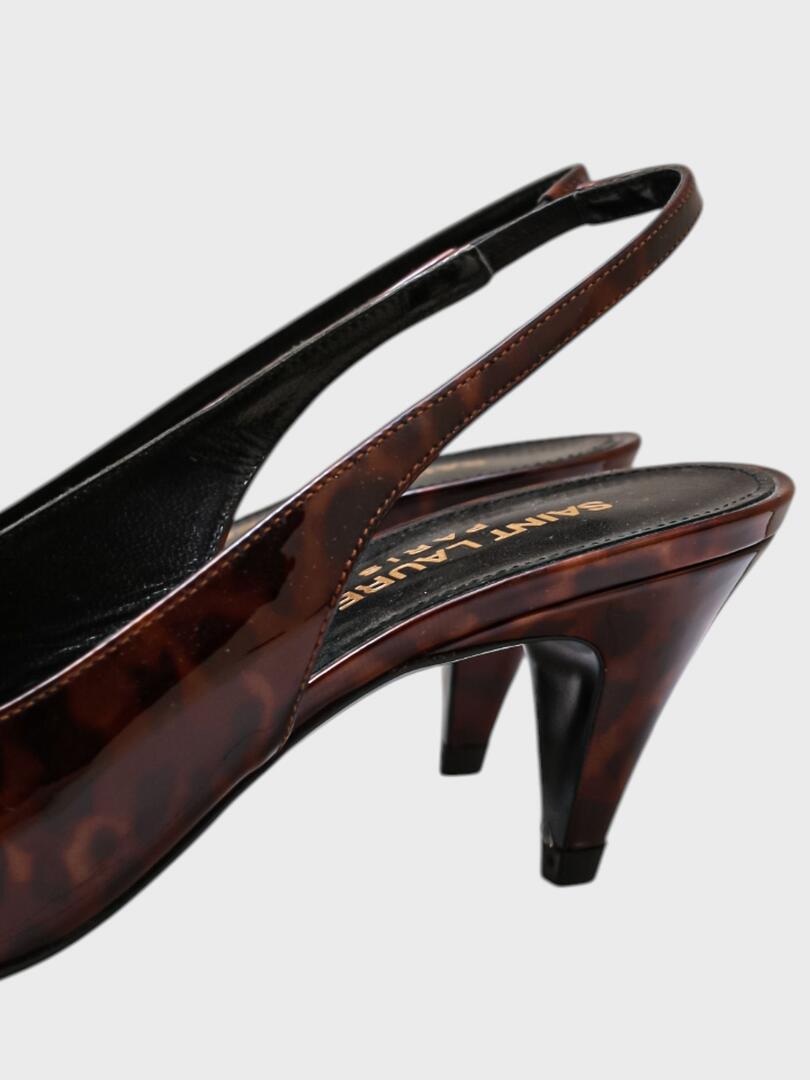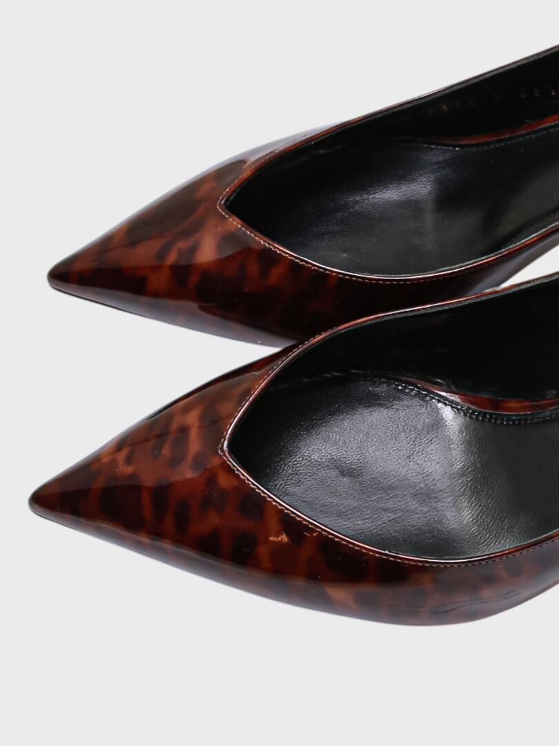 Туфли выполнены из темно-коричневой лаковой кожи с эффектом тигрового принта. Модель сочетает классический силуэт на высоком шпильке с современными декоративными элементами, создавая эффектный и стильный образ. Идеальный выбор для вечерних мероприятий или делового стиля. Saint Laurent — французский модный дом, основанный в 1961 году Ивом Сен-Лораном и Пьером Берже. Бренд стал известен благодаря элегантной и стильной одежде, а также внедрению революционных идей в моду, таких как мужской костюм для женщин. Сегодня Saint Laurent продолжает оставаться одним из ведущих брендов в мире моды. Под руководством Энтони Ваккарелло, который возглавил бренд в 2016 году, Saint Laurent сохраняет свою узнаваемость и приверженность к роскоши, сочетая классику с современными элементами. Основные направления — готовая одежда, обувь, аксессуары и парфюмерия.